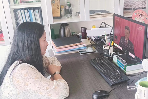 王否(公共基础课部办公室主任):习近平总书记的报告高瞻远瞩,振奋人心,为高校立德树人,培养社会主义建设者和接班人指明了方向。我们目睹了祖国非凡十年的历史性成就和历史性转变,也深刻认识到了新百年征程上的使命和责任。作为新时代高校教育工作者,我们要肩负起历史使命,始终不忘“为党育人、为国育才”初心,深刻领悟党的二十大精神要义,强化个人理论武装,立足岗位工作,细悟笃行,知行合一,不断提高自己的政治站位和思想认识,积极作为、做好表率,落实好各项工作,为学校事业发展贡献自己的力量,为全面推进中华民族伟大复兴做出自己的贡献。