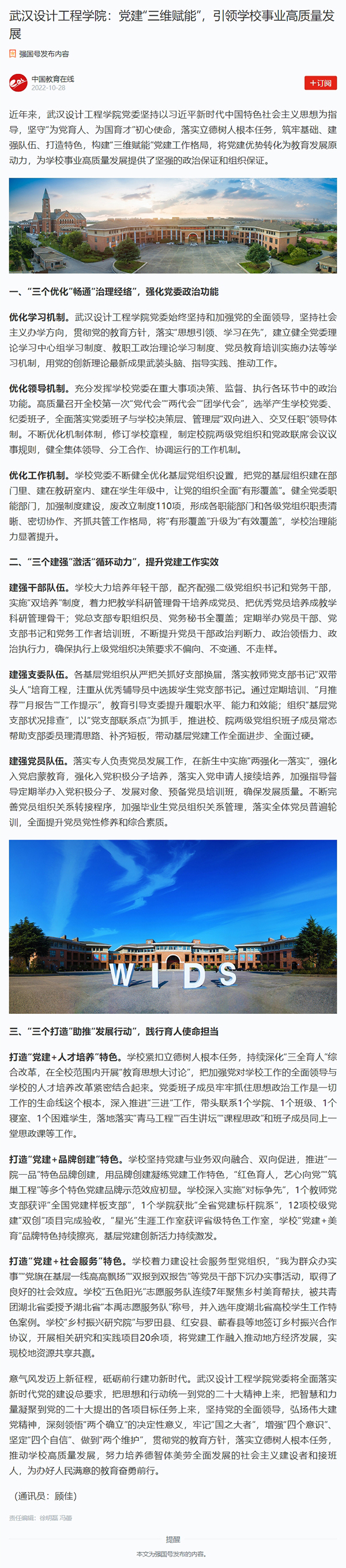 优化工作机制。学校党委不断健全优化基层党组织设置,把党的基层组织建在部门里、建在教研室内、建在学生年级中,让党的组织全面“有形覆盖”。健全党委职能部门,加强制度建设,废改立制度110项,形成各职能部门和各级党组织职责清晰、密切协作、齐抓共管工作格局,将“有形覆盖”升级为“有效覆盖”,学校治理能力显著提升。