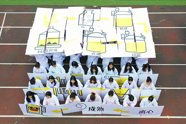 食品与生物科技学院方阵展示着啤酒酿造工艺。王行 摄