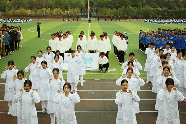 亚心护理学院方阵手语操传递温暖。黄俊雯 摄