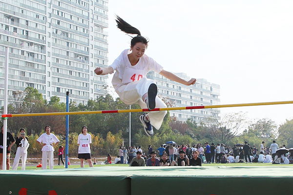 开幕式圆满结束后,第十四届运动会各项赛事拉开帷幕。本届运动会共设置了包括100米、200米、接力赛、跳高、跳远等8个项目的田径竞赛,毛毛虫竞速、袋鼠运瓜、三足鼎立等6个趣味竞赛项目,全校8个学院540余名运动员报名参赛。值得一提的是,不仅前期举行的团体健身操舞比赛将计入团体总分,今年还新增了团体接力和体能素质两个项目。而由学校工会承办的教职工运动会将进行拔河、踩气球、同舟共济等4个项目的比赛。