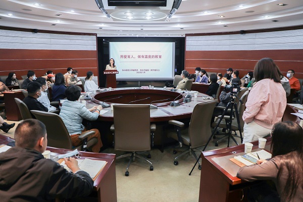 专题报告结束后,美合日姑丽•阿不都外力还分享了自己在新疆走访学生家庭的感人故事。她说,“打动人心的育人故事必然源自最普通与平实的日常工作。从过往点滴中选择最能见微知著、最有温度的故事进行分享才能达到感人至深的效果。”