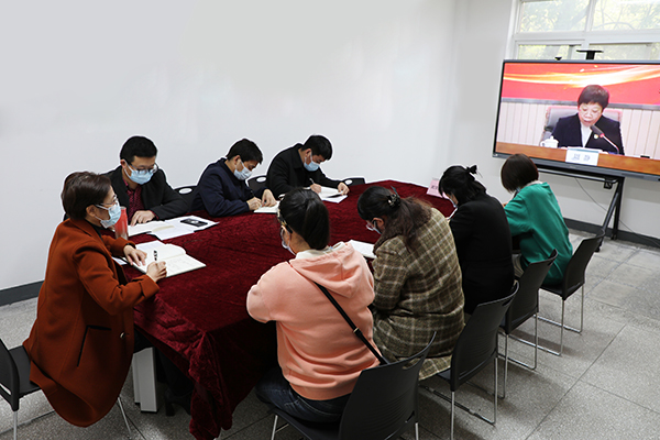 pp电子在得一堂1139会议室设分会场组织收看。学校党委书记冉春桃和党委宣传部、党委学生工作部(处)、马克思主义学院负责人、教师代表参加会议。