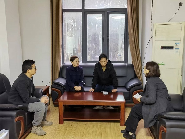 学校党委书记冉春桃(中左)到栗庙社区调研督导。
