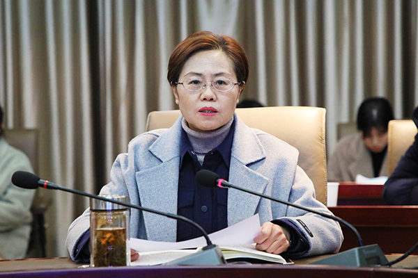 学校就业工作领导小组组长、党委书记冉春桃部署推进2023届毕业生就业创业工作。刘恒 摄