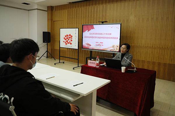 主题班会上,党委书记冉春桃、校长龚少平以《深入学习贯彻党的二十大精神 深刻领会中国式现代化的中国特色和本质要求》为主题,从深刻学习领会党的二十大精神,深刻领会中国共产党的中心任务,深刻领会中国式现代化的中国特色和本质要求等方面进行了深入解读和系统阐释。