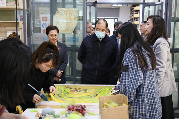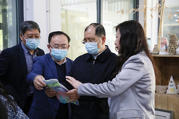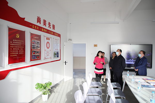 张幸平一行调研参观了学校课程思政教学研究中心、公共艺术学院实验室和课程作业展、时尚设计学院党员之家、“一站式”学生社区服务中心等,并与学校党委领导班子座谈,了解学校党建工作情况和办学特色,听取相关意见建议。