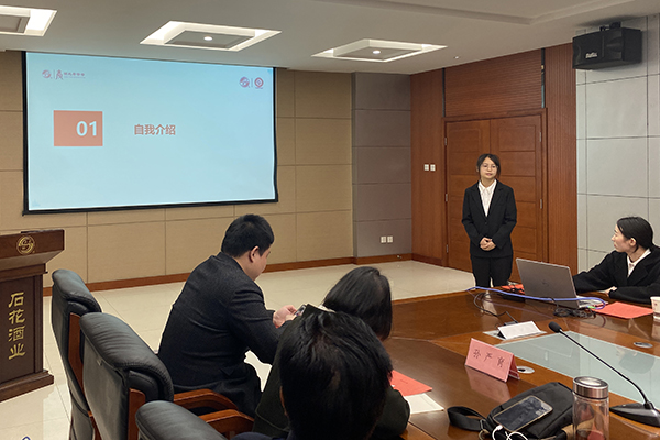 参观结束后,校企双方在石花厂区开展座谈交流。冉春桃对石花酒业的热情接待表示感谢。她表示,此次考察收获满满,不仅学习了解了石花酒业的企业文化和深厚的历史底蕴,而且看到了学生在企业的快速成长,希望双方在原有校企共建班合作的基础上,进一步拓展合作领域和合作模式,在专业建设、课程设置、学生实习实践、“双师”型教师培养、企业导师聘用等方面加强合作,不断拓展校企合作的深度、广度和力度,实现校企共赢、共同发展。