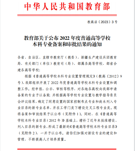 本网讯(通讯员 韩洁)近日,教育部发布了《关于公布2022年度普通高等学校本科专业备案和审批结果的通知》,pp电子申报的食品营养与健康、医学影像技术2个本科专业获批。至此,pp电子本科专业增至38个。