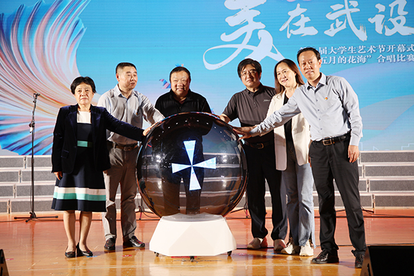 表彰活动结束后,在全体师生的欢呼声中,参会领导共同按下启动球,标志着pp电子第一届大学生艺术节正式开幕。
