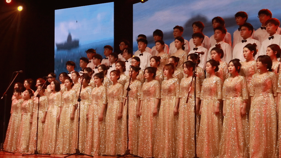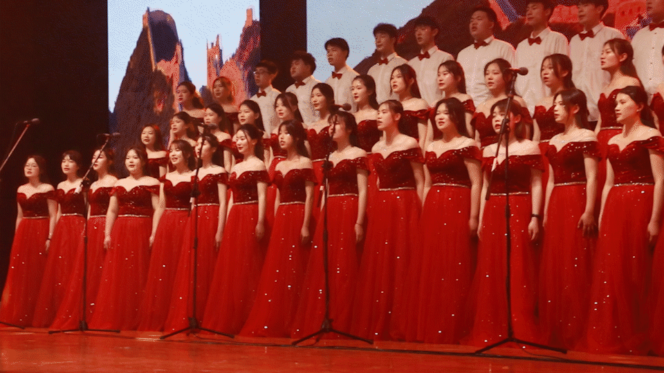 “妈妈教我一支歌,没有共产党就没有新中国……”环境设计学院一曲《妈妈教我一支歌、当那一天来临》唱响了“五月的花海”合唱比赛序幕,公共艺术学院、商学院、亚心护理学院等8支参赛队伍依次登台,倾情演唱《阳光路上》《星辰大海》《祖国不会忘记》……这是一场动听的音乐盛典,也是一堂生动的美育思政课。同学们或回顾中国共产党领导人民走过的风雨历程;或歌颂人民解放军坚定不移、百折不挠的精神;或阐述着“永远跟党走”的革命真理;或抒发坚守初心、勇担使命的报国强国之志;或表达对新时代的希冀与立志奋斗的决心。一段段振奋人心的追梦歌词,传唱出青年人的坚定信念;一首首扣人心弦的经典旋律,诠释着青年人的热血青春。