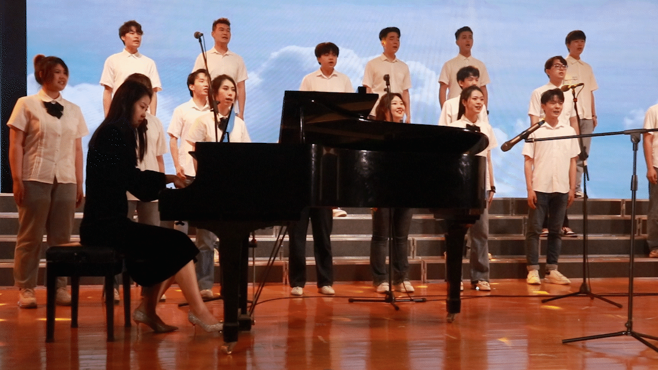 大学生艺术团寻音合唱团倾情演唱歌曲《飞云之下》。左思怡 摄