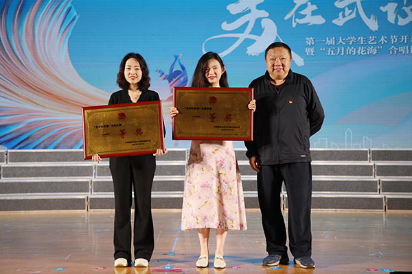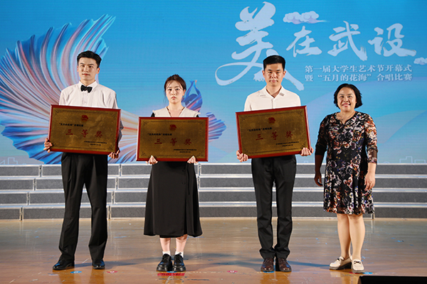 本网讯(记者 叶桐 姜若文)5月4日晚,“学习二十大 永远跟党走 奋进新征程”——“五四”表彰活动、第一届大学生艺术节开幕式暨2023年“五月的花海”合唱比赛在大学生活动中心二楼举行。学校董事长程凡,校长、党委副书记龚少平,董事魏彬,党委副书记、副校长张丽娟,副校长徐拥华等校领导出席活动,并为获奖集体和个人颁奖。