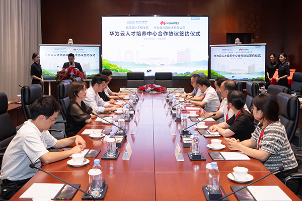 仪式上,学校党委常委、副校长徐拥华表示,经过充分考察及调研,学校选定华为和中软国际作为深度合作伙伴合作共建“华为云人才培养中心”,是坚持以学生发展为中心,深化产教融合,科教融汇,开辟发展新领域新赛道,不断塑造发展新动能新优势的重要举措。学校将以此为起点,深入开展课程体系共建、课程教学改革、双师型师资队伍培养、教研科研项目培育、实验室共建和实习就业基地建设等多方面的合作,实现教育发展、科技创新、人才培养一体推进,创新链、产业链、人才链一体部署,推动校企深度融合发展,不断为高素质应用型人才培养赋能加力。