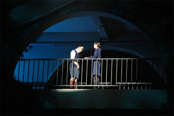 为了增强舞台效果,学院首次尝试将音乐剧从室内搬到室外进行,将教学楼、连廊、中庭、花草树木等校园环境与演出道具一同融入舞台布景,拓宽叙事视野,力图打破传统思维定式,探索多元艺术表现形式。