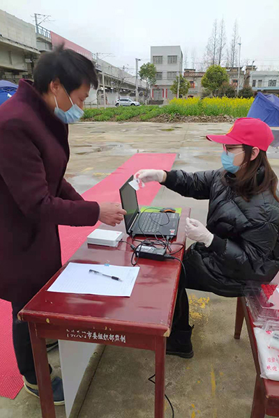 在叶子的印象里,有两件事令她记忆犹新。一件发生在2021年冬天,小板镇疫情防控指挥部急需志愿者帮助,叶子主动申请来到村里的临时核酸检测点做扫码工作。检测点正好在一处风口上,大风吹得人头疼,办公设施也经常被吹得东倒西歪,每天开始工作前都要重新整理摆放一番。虽然办公条件艰苦,但一想到自己的工作能保障人民群众的健康安全,叶子便觉得做什么都充满动力。
