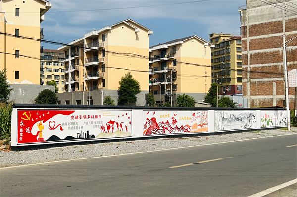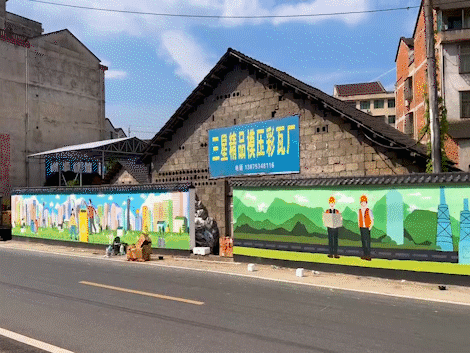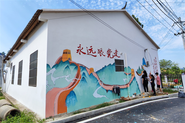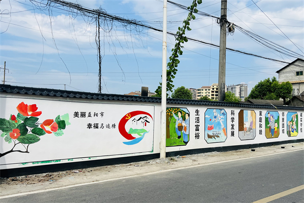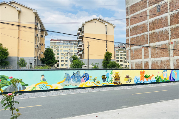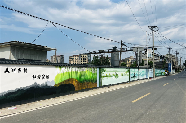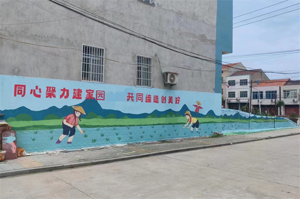 成龙影视传媒学院“乡村改造家”团队为湖南省益阳市桃江县马迹塘镇绘制的特色墙绘。