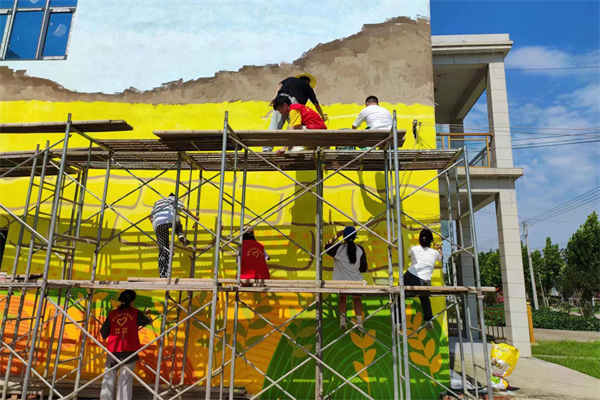 pp电子2023年暑期社会实践团队走进乡村、社区开展特色墙绘活动。