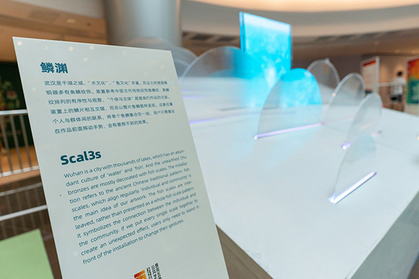 “这是我第一次与计算机科学与技术专业做‘跨界’尝试,作品以公共艺术服务城市文化、交互科技融入视觉创意为特色,市民可参与式体会武汉千湖之城的‘水文化’和‘鱼文化’。”作品《Scal3s 鳞渊》的创作者之一、数字媒体艺术专业学生梁辰介绍道,“包括想法构思、程序设计、组装硬件、搭建模型等在内,都是我与团队探讨协作完成的,非常有成就感,这次尝试,让我的设计更有方向,未来将尝试设计更有艺术灵韵和科技洞见的新作品。”