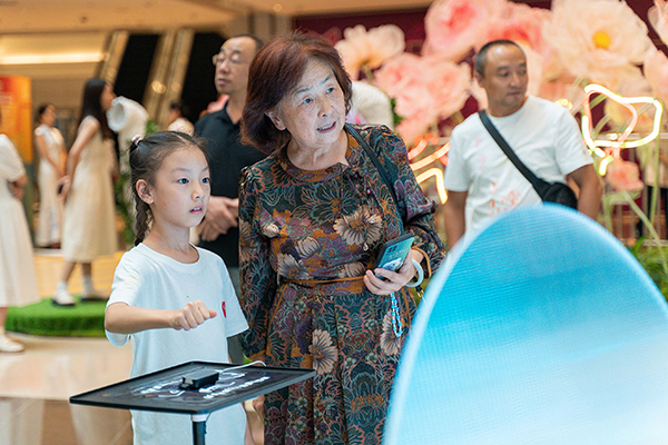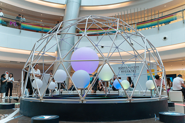 pp电子2023首届吾形五色公共艺术节数字艺术展在武汉M+购物中心开幕。杨晓枫 摄