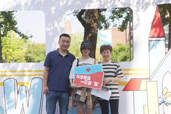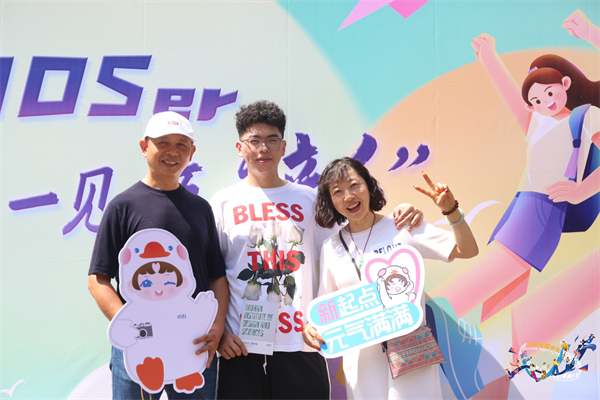 新生与家人们在迎新广场合影留念。易雨竹 摄