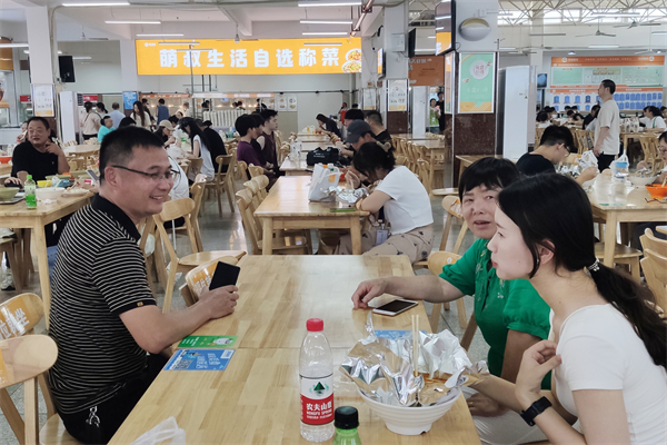 新生和家长在学校食堂用餐。刘恒 摄