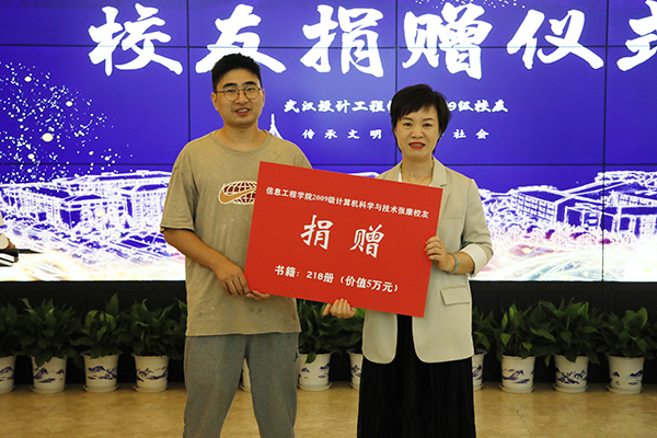 “武设是我追梦的起点,正是有了武设的栽培,现在才能实现梦想。希望学弟学妹们以书润心、与智同行,敢于有梦、勇于追梦、勤于圆梦。”张康介绍了捐赠的初衷,并向学校捐赠了文学、艺术、地理、历史、自然科学等十三大类218册、价值5万余元的书籍。