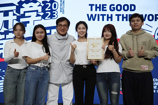 “成龙院长,您还记得第一次表演的情景吗?”在咏归小礼堂,成龙院长向同学们分享从影经历,“我还记得第一次拍戏是在《梁山伯与祝英台》里演一个小仙童,今年正好是我从影60周年!”院长说道,从影以来,最大的感受就是“做一名全职演员,要努力让自己成长为全能型人才,自编、自导、自演、自剪都要学。”他希望同学们提高对自己的要求,能同时涉猎影视行业的多个领域,成长为全能型人才。