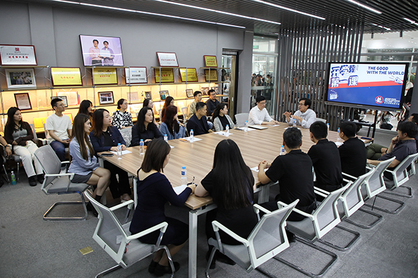 成龙院长在八佾会议室与教师们座谈,他邀请老师们能多去他的片场参加实践,打破学校和行业之间的“疏离感”,实现资源共享、优势互补、促进学校与行业的共同进步与成长。“乱跑、大喊大叫……这是初入片场的小白经常犯的错”,成龙院长表示,“最好的教室是片场,行业的‘规矩’只有到片场才能学会。”