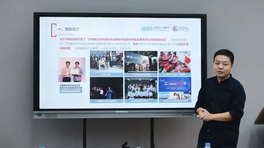 杨恒向来宾全方位地介绍和展示了成龙影视传媒学院的办学理念、办学特色、产学研交流、教育教学改革及专业服务社会等情况。