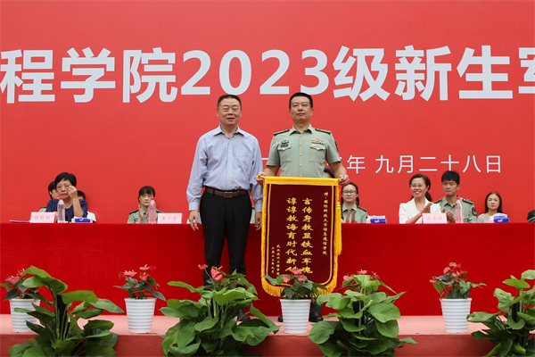 大会上,龚少平代表学校向2023级新生军训承训单位、国防科技大学信息通信学院赠送锦旗,对该校给予pp电子军训工作的支持表示感谢。