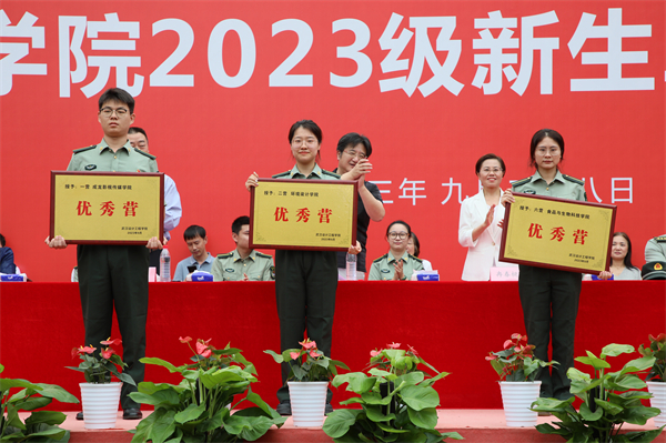 张丽娟宣读《关于表彰2023年新生军训工作先进集体和先进个人的决定》,对军训工作中表现优秀的个人和集体进行表彰。参会领导为获奖代表颁奖。