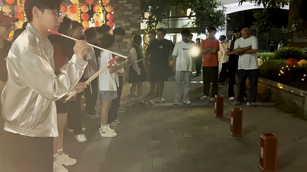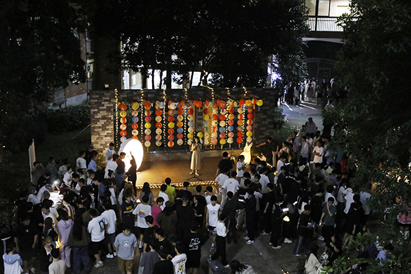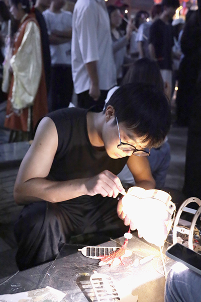 夜幕降临,华灯初上,又是一年花好月圆时。“筑梦书苑”社区广场精心布置的中秋彩灯,营造出浓厚的传统中秋节日氛围。伴随着悠扬的古琴弹奏、民谣演唱,师生从自制冰皮月饼中寻觅佳节之味,从糖人糖画中感受生活甜蜜;灯会活动还特别精选了投壶游戏、花艺团扇制作、彩灯制作、猜灯谜等具有传统代表性的文化活动让师生们沉浸其中;不少身着传统汉服的学生纷沓而来,为灯会现场更添浓浓古韵。