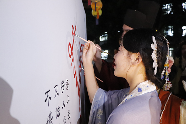 本网讯(通讯员 肖佩璐)古琴弹奏、投壶游戏,汉服展示、传统糖画,花艺团扇、彩灯制作......9月27日晚,一场“中国味”十足的“迎中秋,庆国庆,共绘中国结”中秋灯会在环境设计学院“筑梦书苑”一站式学生社区成功举办。