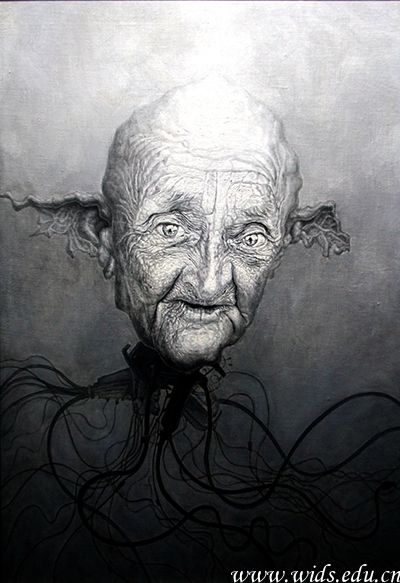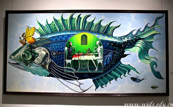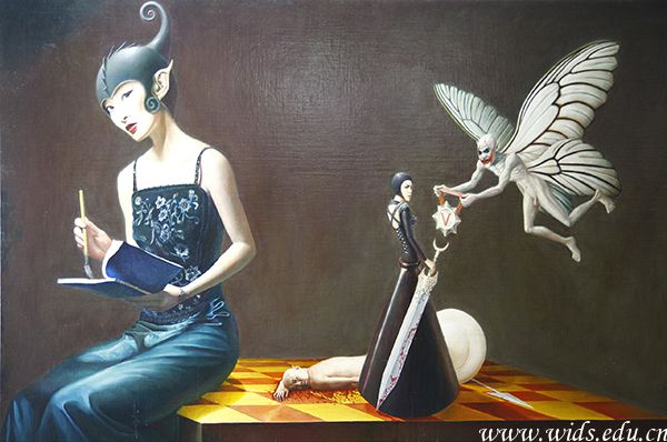 据了解,现场展出的11副色彩绚丽、视觉冲击感强烈的油画作品和23副造型奇特的纸本画是刘治二十多年潜心创作完成的。作品灵感大多都来源于作者自己的梦,“十七八岁的时候,总喜欢做一些非常奇怪的梦,什么科幻啦,妖怪啦,神话啦……醒来以后就爱对着镜子画自面像,仔细的观察和审视着自己,力图通过画画把自己拉回到一个正常的世界。”