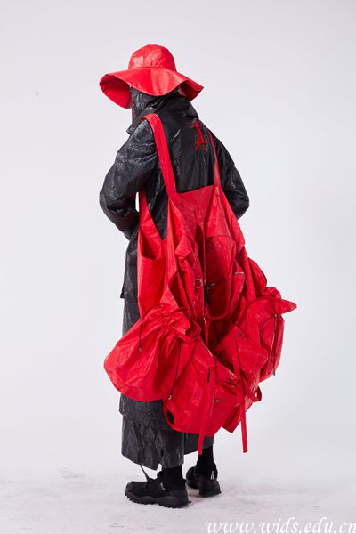 “《武丶极》的配色中,红色代表极限运动和日本武士道精神共有的激烈和勇气,黑色则代表他们的严肃性,再用中国传统刺绣,将二者的精神内涵点缀在衣服上。”张鑫淼介绍,服装的选材用料也颇讲究,以运动面料和水洗纸为主,“水洗纸属于越穿越皱越好看的面料,褶皱越多光泽感越强,也符合现在的环保趋势。”