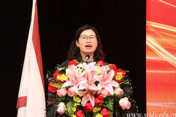 教师代表、艺术设计学院张慧娟老师上台发言。刘恒 摄
