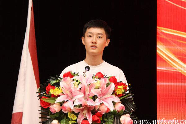 在校生代表、环境设计学院学生雷佳欣上台发言。刘恒 摄