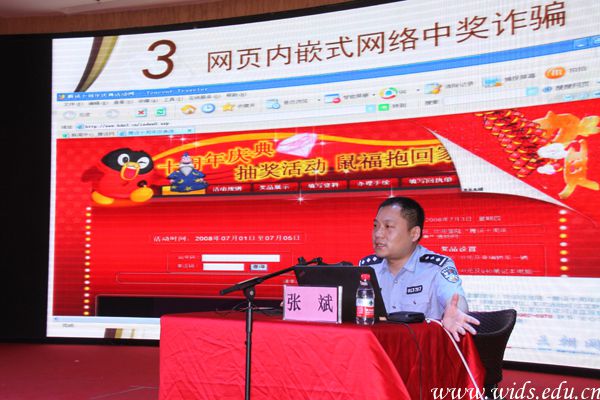讲座中,张斌向师生们详细介绍了电信网络诈骗的常见手段。如冒充公检法诈骗,骗子以银行卡欠费、法院传票等为由,称事主涉嫌洗钱、涉黑等犯罪,要求受害者向指定的“安全账户”中转账。QQ、微信诈骗中,骗子编造各种借口向其他QQ好友借钱,或通过转账方式骗钱,或冒充老板要求下属转账。此外还有代办信用卡诈骗、“网络购物”网站诈骗、网络中奖诈骗、山寨网站诈骗、微信红包诈骗等五花八门的手段。