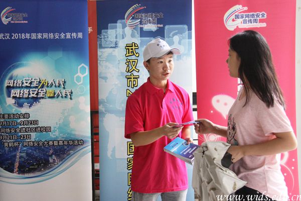 志愿者向师生发放国家网络安全宣传周宣传册。刘恒 摄