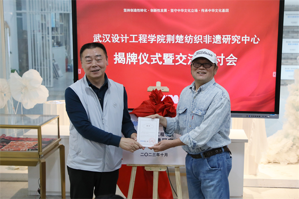 本网讯(通讯员 胡舒娟)10月27日,荆楚纺织非遗研究中心揭牌仪式暨交流研讨会在时尚设计学院举行,会议达成以学术技艺融入专业课程校企合作方式,共同探索非遗文化现代化发展路径。中国服装协会上海办副主任侯亮,湖北美术学院教授、湖北省非物质文化遗产研究中心主任张昕,国家级非遗汉绣代表性传承人黄春萍,国家级非遗土家织锦代表性传承人田若兰,国家级非遗黄梅挑花代表性传承人洪利,省级非遗红安大布代表性传承人钟先梅,学校董事长程凡、党委书记冉春桃、校长龚少平、副校长徐拥华等校领导和时尚设计学院院长况敏、党总支副书记陈柏寒等参加会议。
