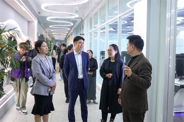 会后,侯亮、张昕一行在时尚设计学院况敏、陈柏寒等的陪同下实地参观了学院实践教学中心。