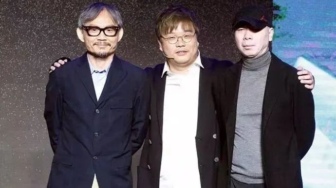 肖洋老师与知名导演冯小刚、陈国富合影。