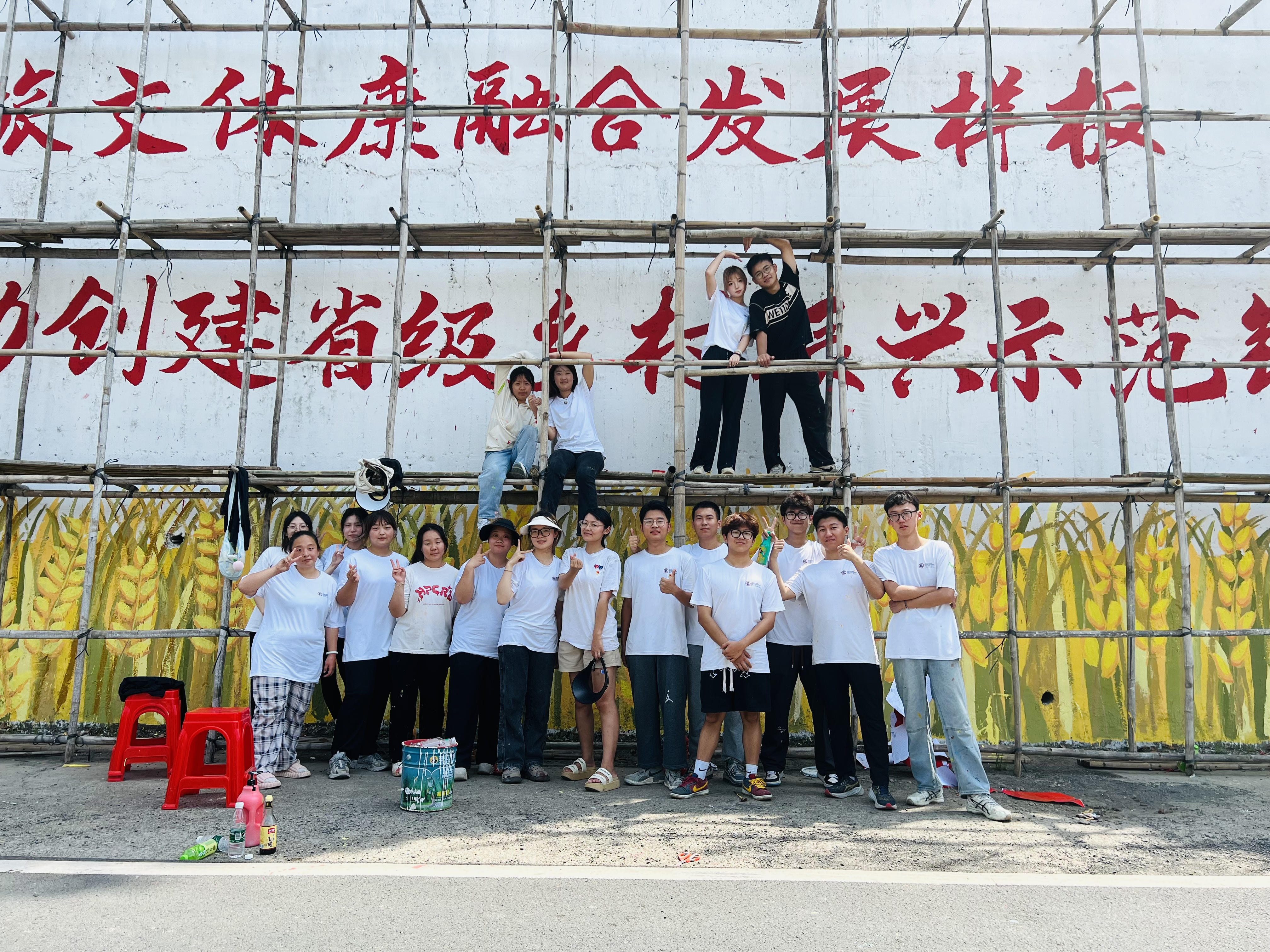 “乡村改造家”实践团绘制文化墙。