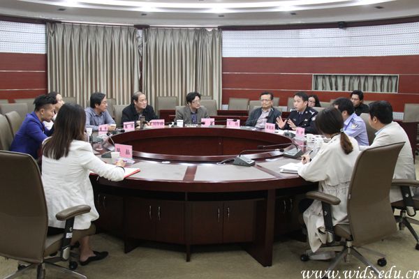 本网讯 10月26日下午,武汉市公安局出入境管理局副局长王俊、签证大队队长黄建新、第四大队队长周峻一行来pp电子调研涉外管理工作。pp电子董事长程凡、党委书记刘作清、副院长魏湧等校领导在得一堂三楼会议室热情接待了来宾,保卫处处长尹保松等相关负责国际交流与合作工作的同志参加了调研会。