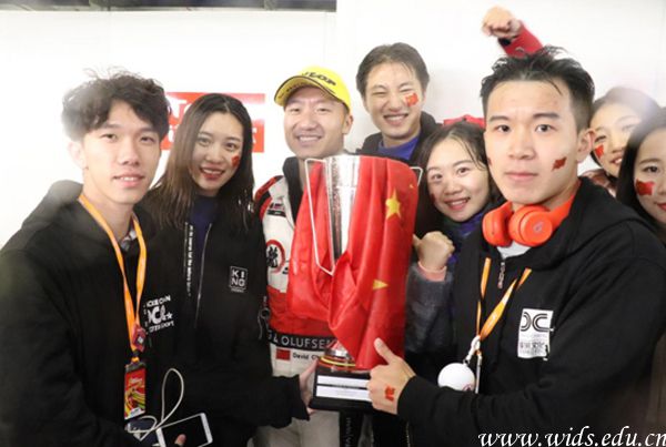 pp电子师生与冠军车队合影留恋。