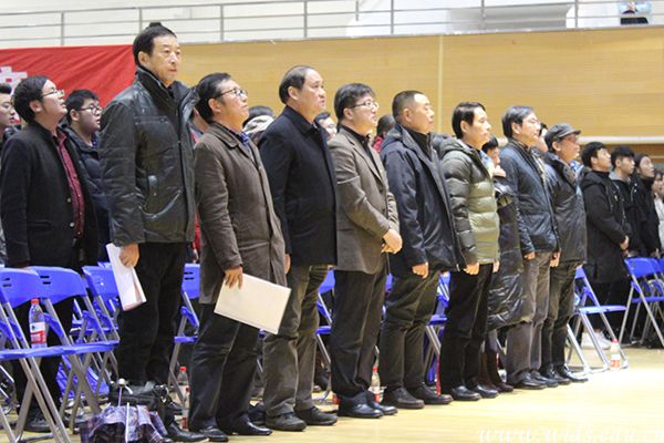 表彰大会现场全体师生起立,奏唱国歌。周思思 摄