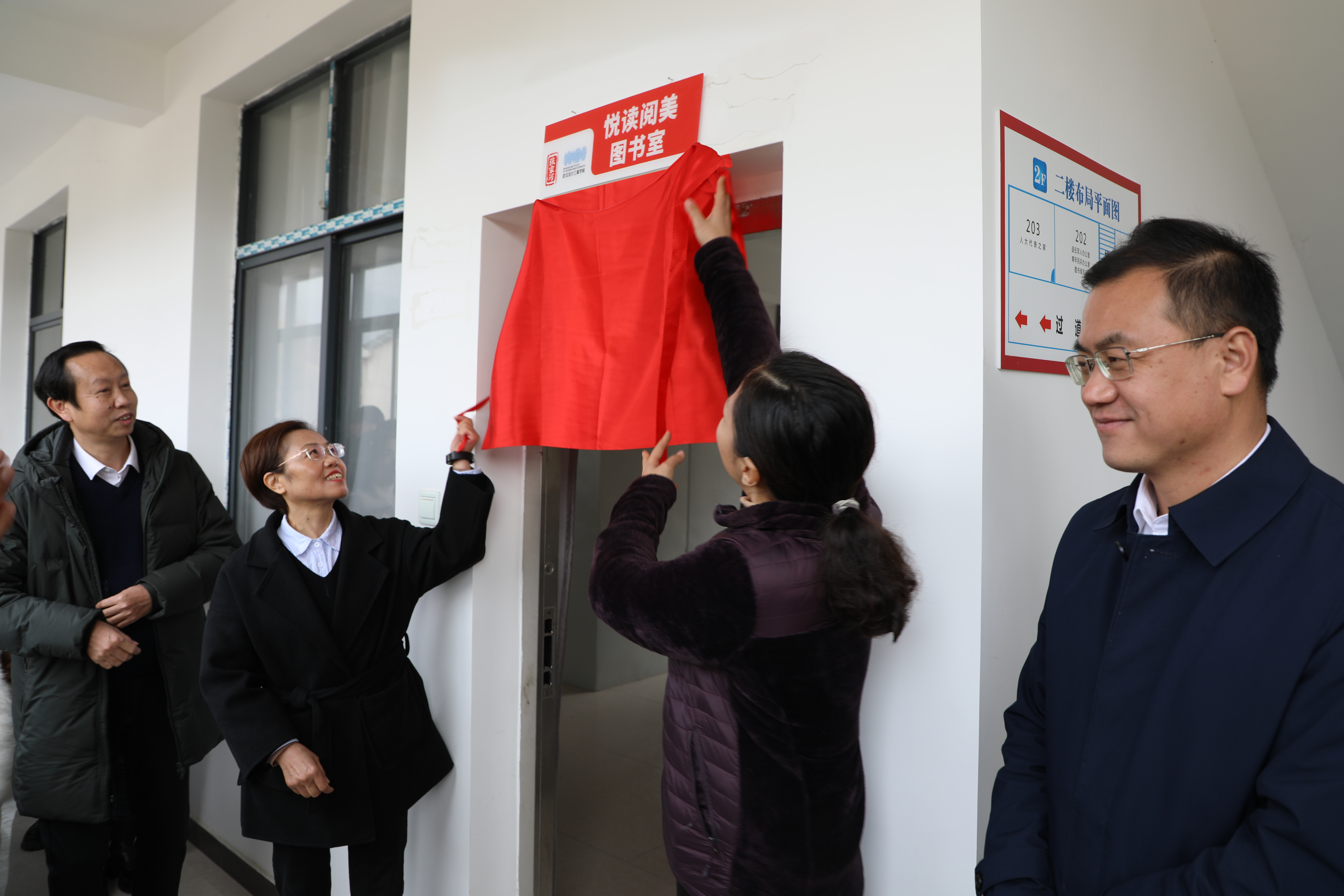 本网讯(通讯员 叶梓)捐一缕书香,献一片爱心。12月28日,由学校图书馆直属党支部和罗田县匡河镇张家河村共建的“悦读阅美”图书室在张家河村成立,学校党委书记冉春桃、罗田县副县长桂雁鸿共同为图书室成立揭牌。学校副校长徐拥华,图书馆直属党支部书记、馆长杨文静和全体党员,罗田县匡河镇党委书记马子飞、张家河村村委全体成员参加揭牌仪式。仪式由学校纪委副书记、乡村振兴驻村工作队队长尹保松主持。