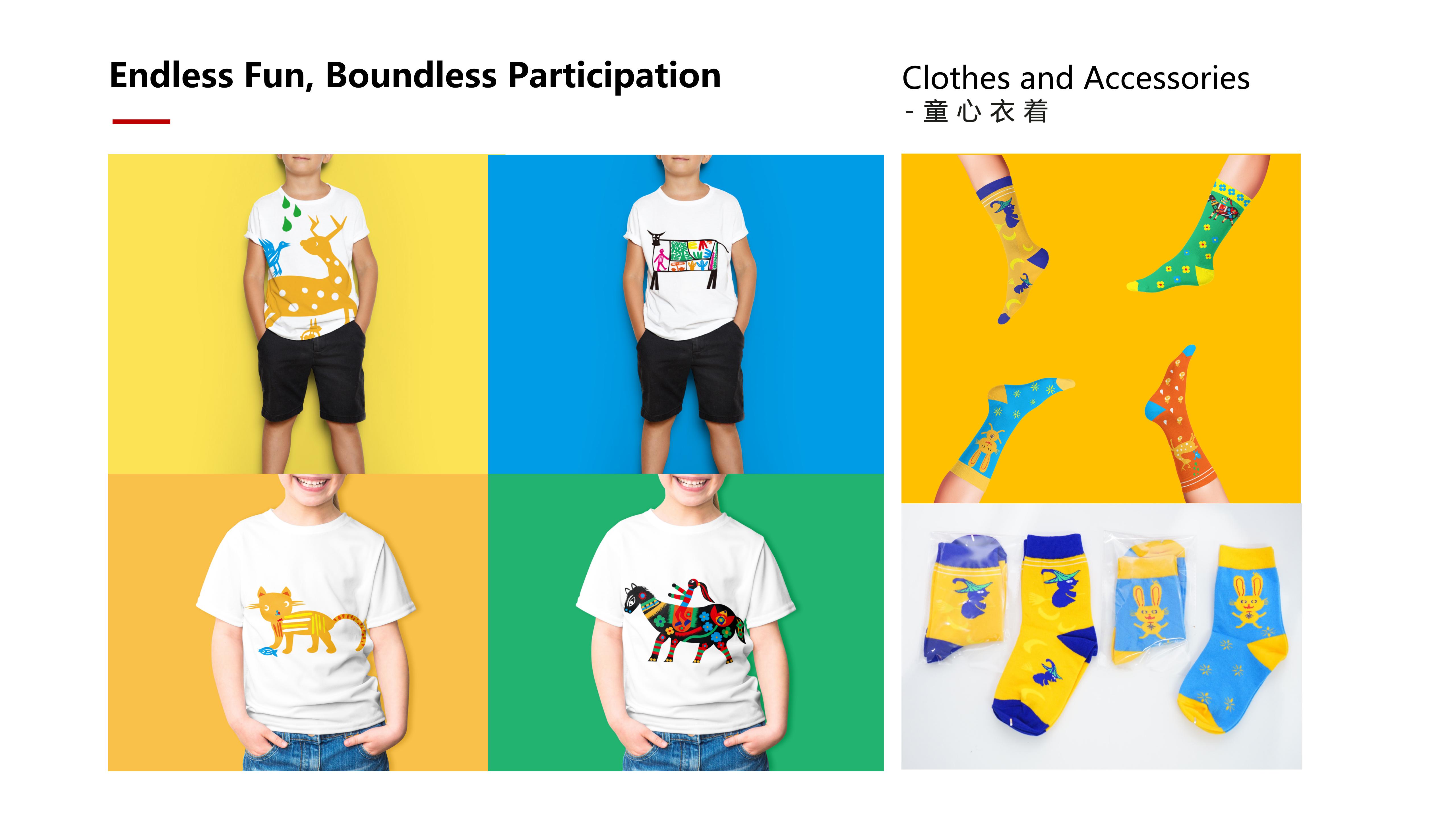 充满童趣的有声双语故事书和精美的儿童服饰、旅行用具,让中国非遗文化的魅力走出国门走向世界。