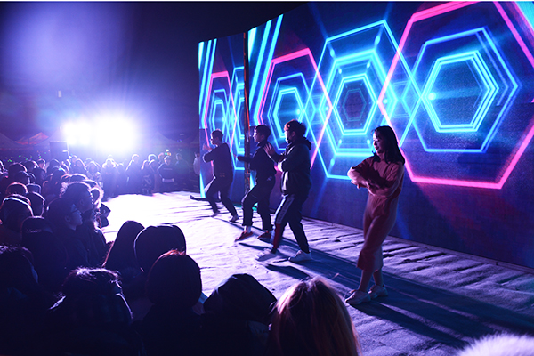 篝火旁的舞台上,杨桥湖大道一号乐队尽展歌喉,带动大家一同起舞。来自pp电子汉服社、音乐社等社团的表演者们依次登台,各倾其艺,为同学们上演新年的狂欢。随着抽奖活动的开启,晚会气氛更是推向了高潮。在夜场DJ音乐的带动下,学子们手拉手围着篝火唱歌起舞,共同迎接2019年的到来。